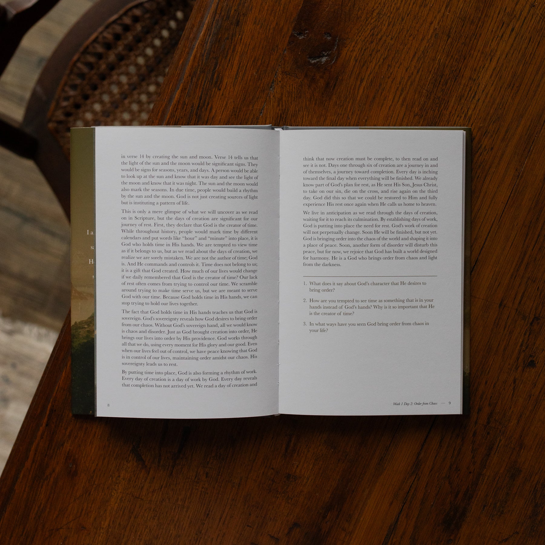 Each week contains five days of study material, including daily study questions, a weekly memory verse, and weekly reflection questions.