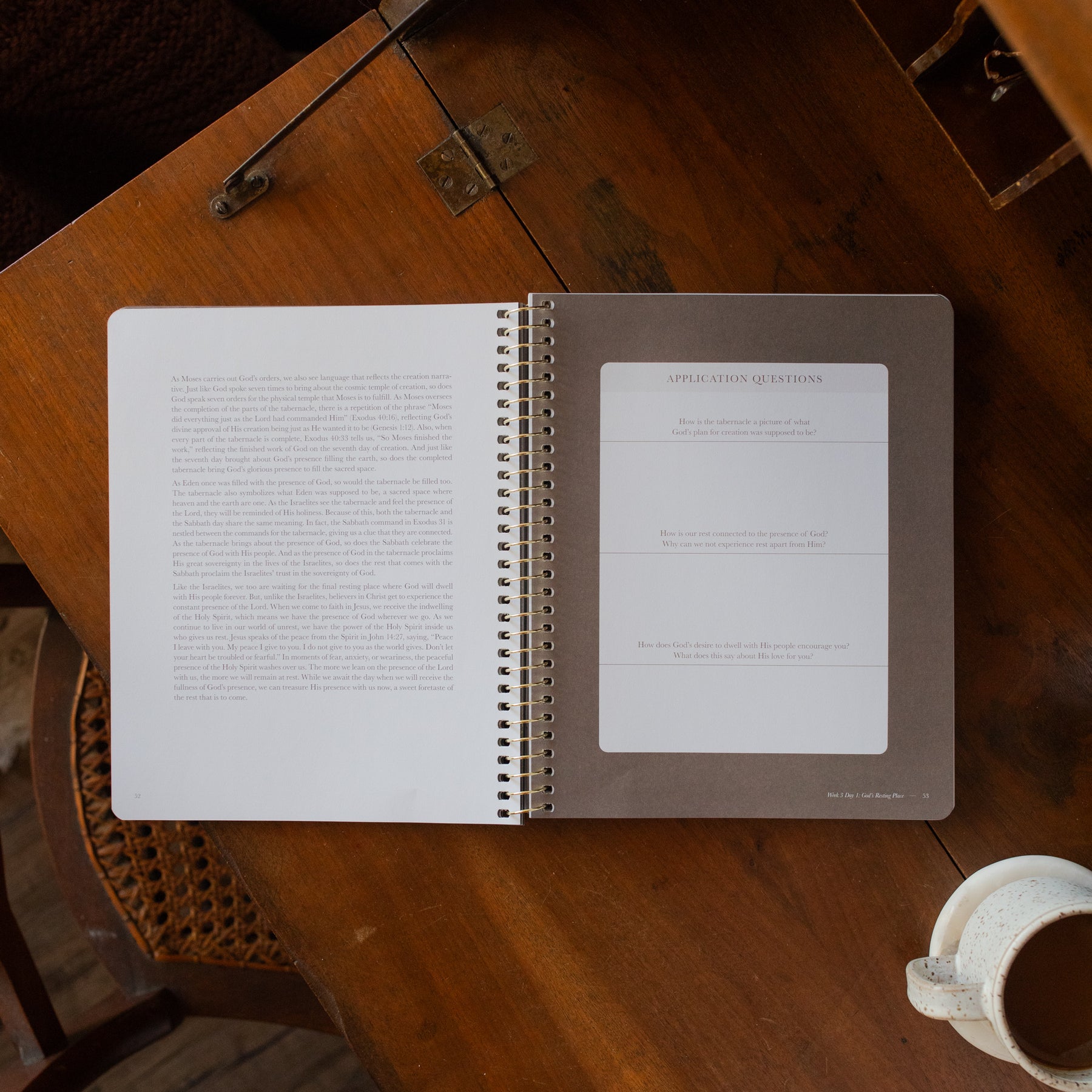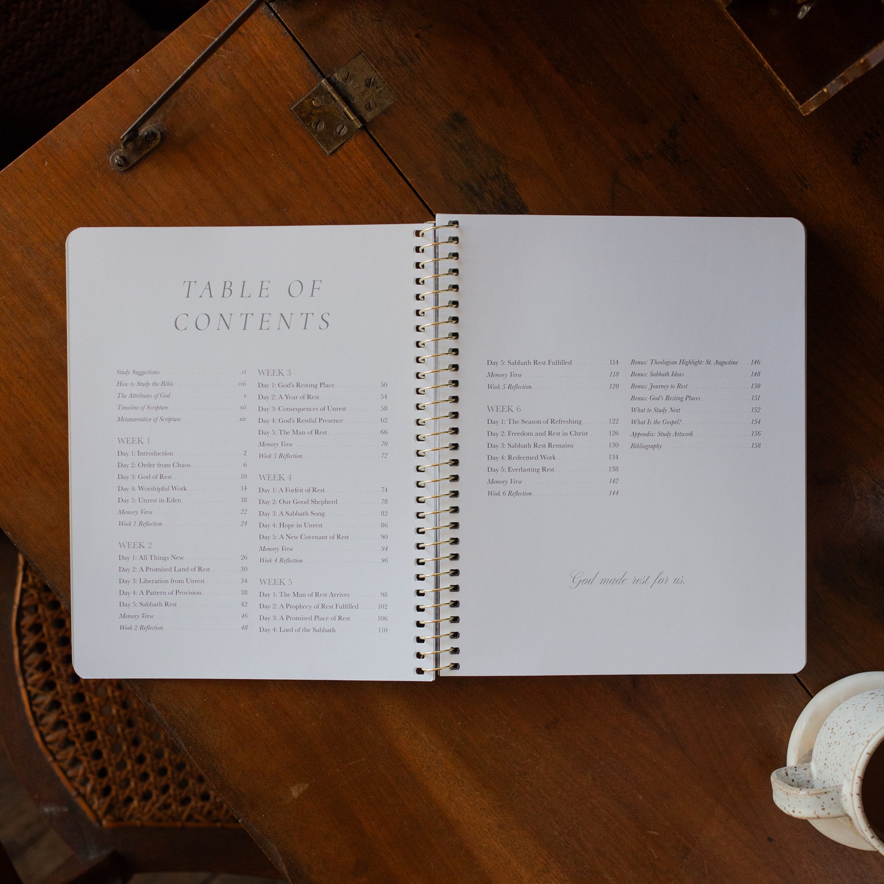 Each week contains five days of study material, including daily study questions, a weekly memory verse, and weekly reflection questions.