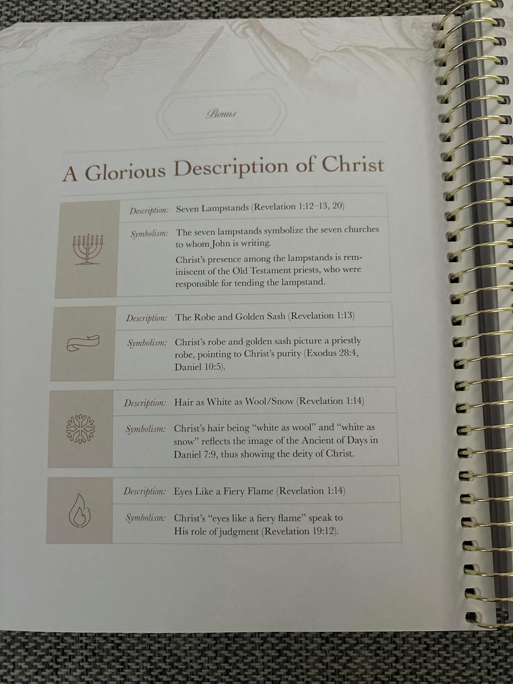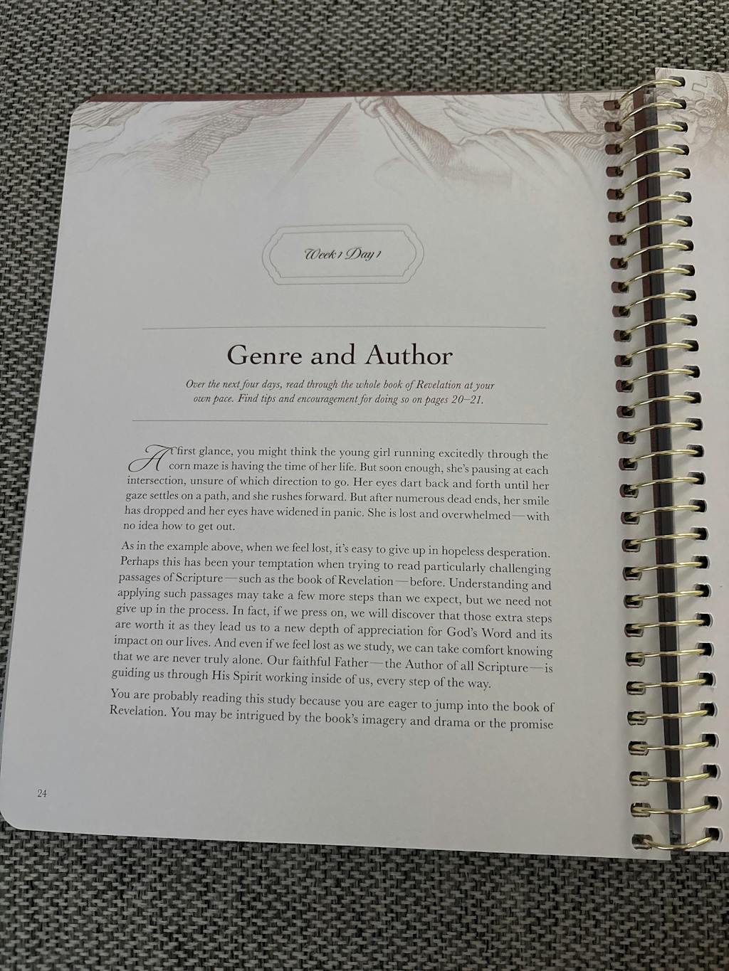 I am so excited to start this study! It is high quality and beautiful! I love that is is spiral bound. Just flipping through the content looks thoughtful. Looks like they were very intentional in how things are laid out, connections made, bonus info, verses to memorize, and places to reflect. I’m excited to jump in!