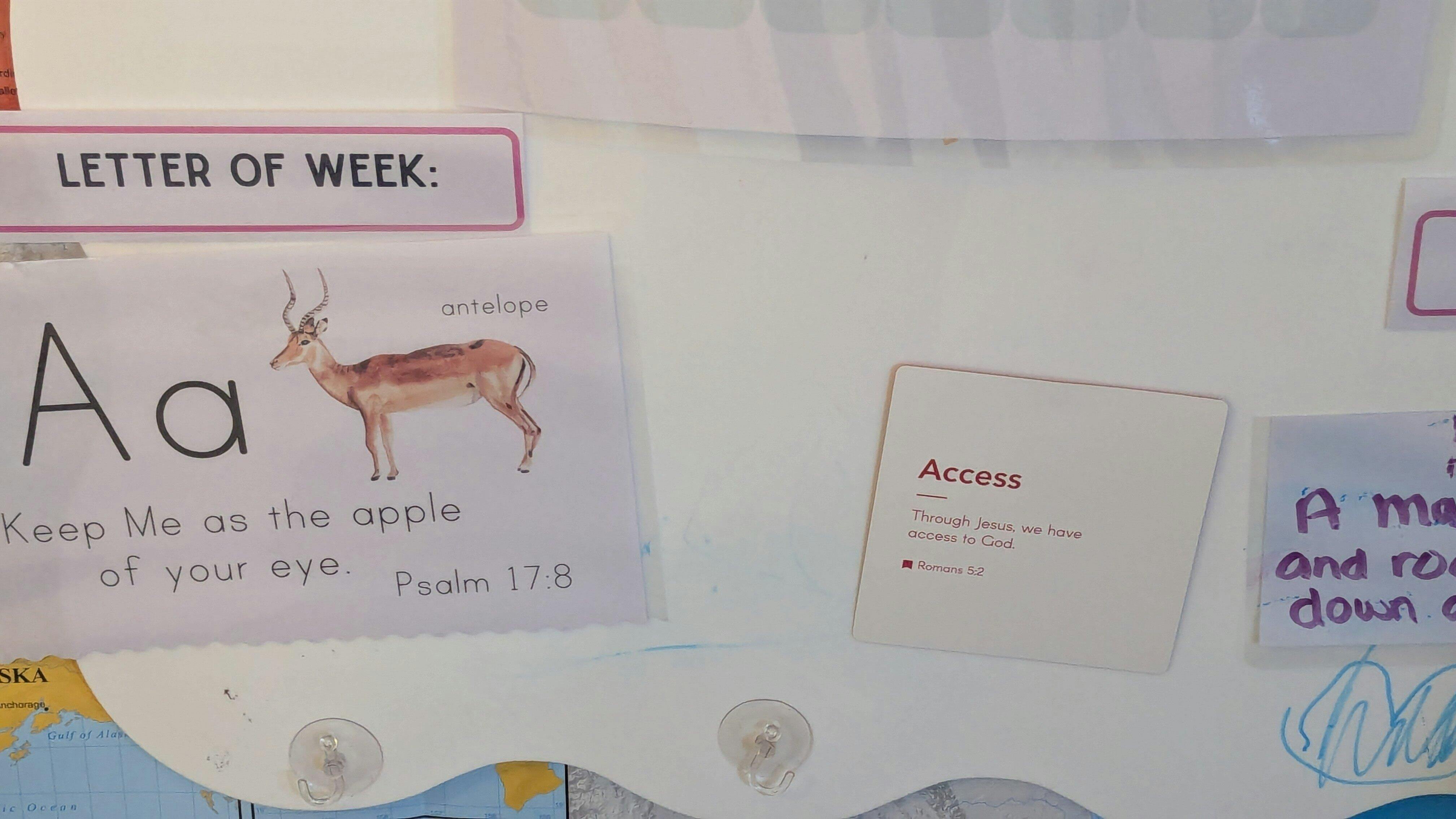 Example of letter of alphabet in the Promises of God verse cards for kids