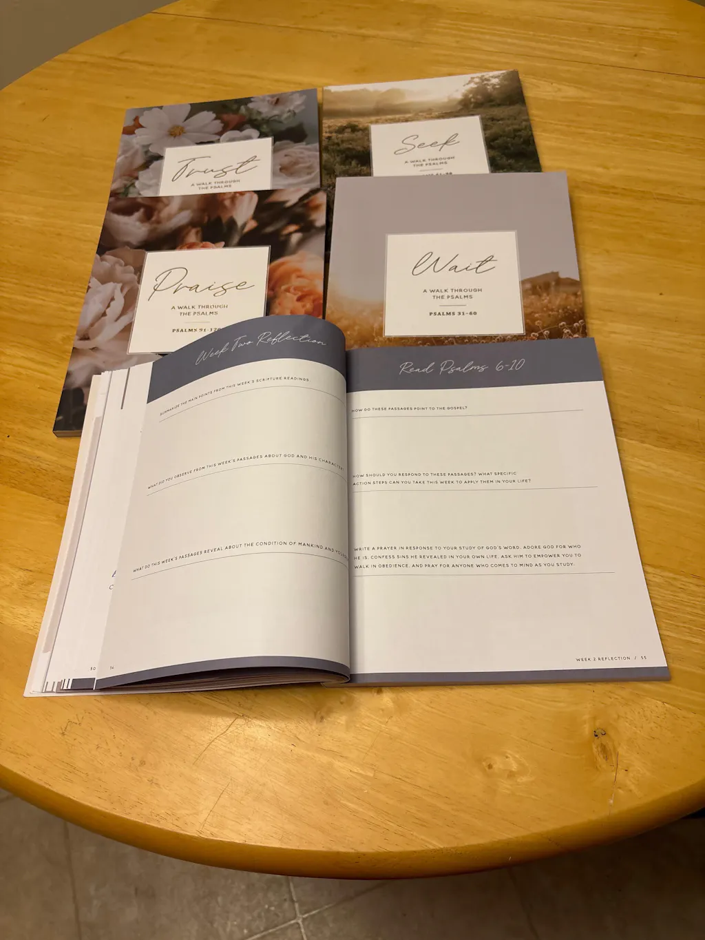 Trust: A Walk Through Psalms 121–150 is a 6-week study. This study looks closely at 30 psalms that remind us to look to God and rest in who He is in our moments of hardship.