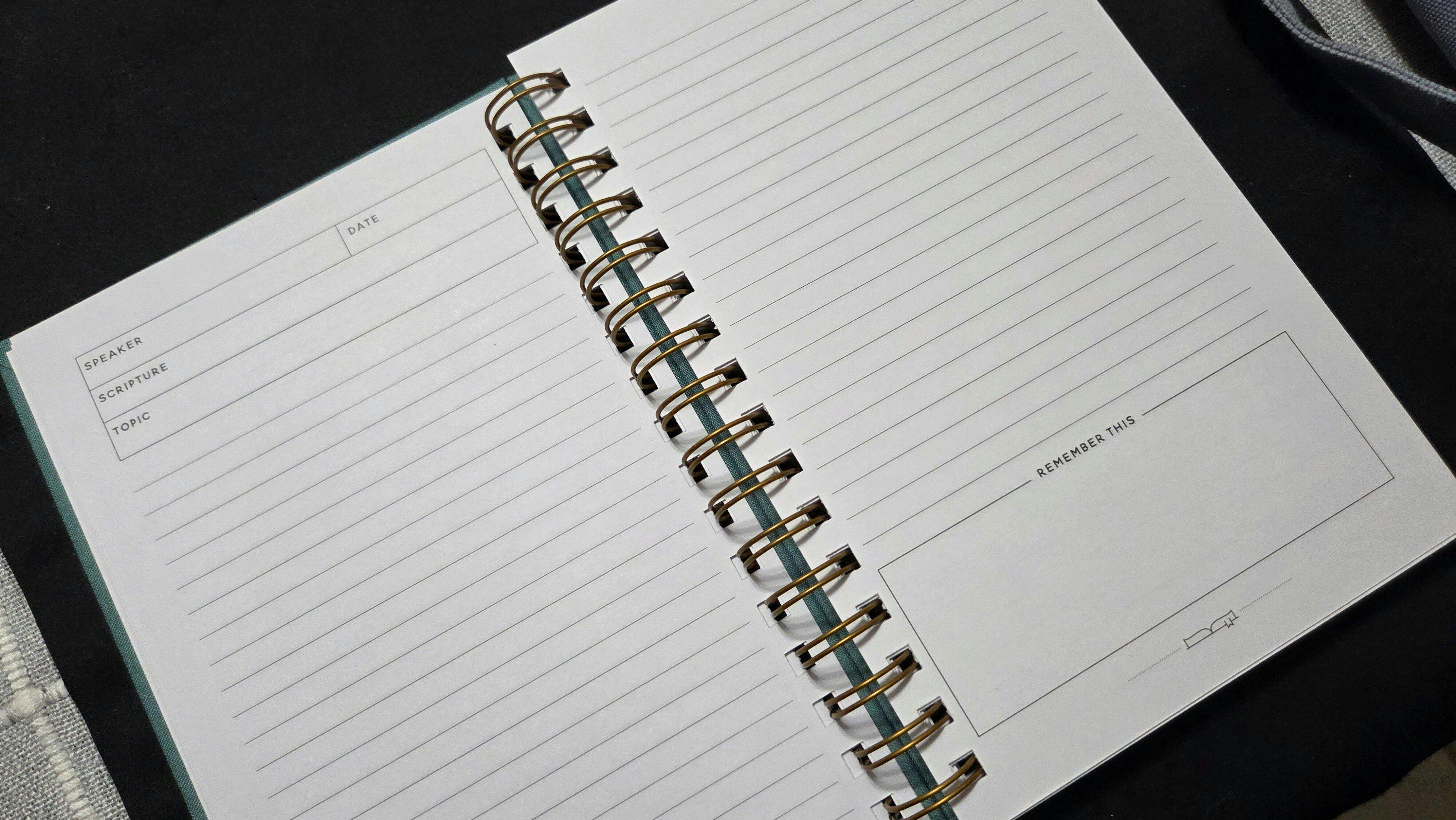 Our Sermon Notes Journal in Teal Spiral is the perfect journal for holding all your sermon notes.