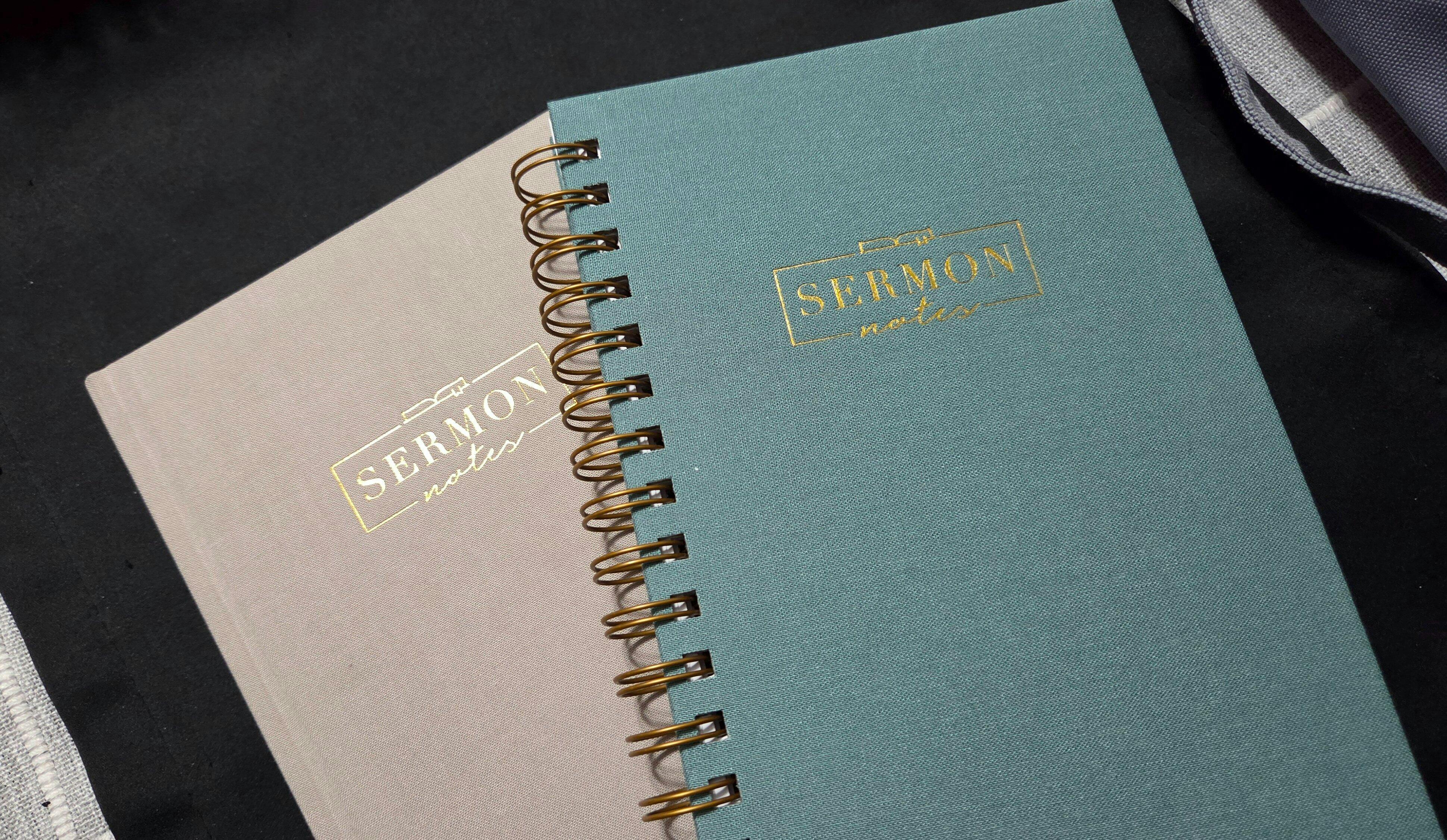This 6” x 9” journal is thoughtfully designed with sections to write in the speaker’s name, sermon date, Scripture references, topic, and things to remember.