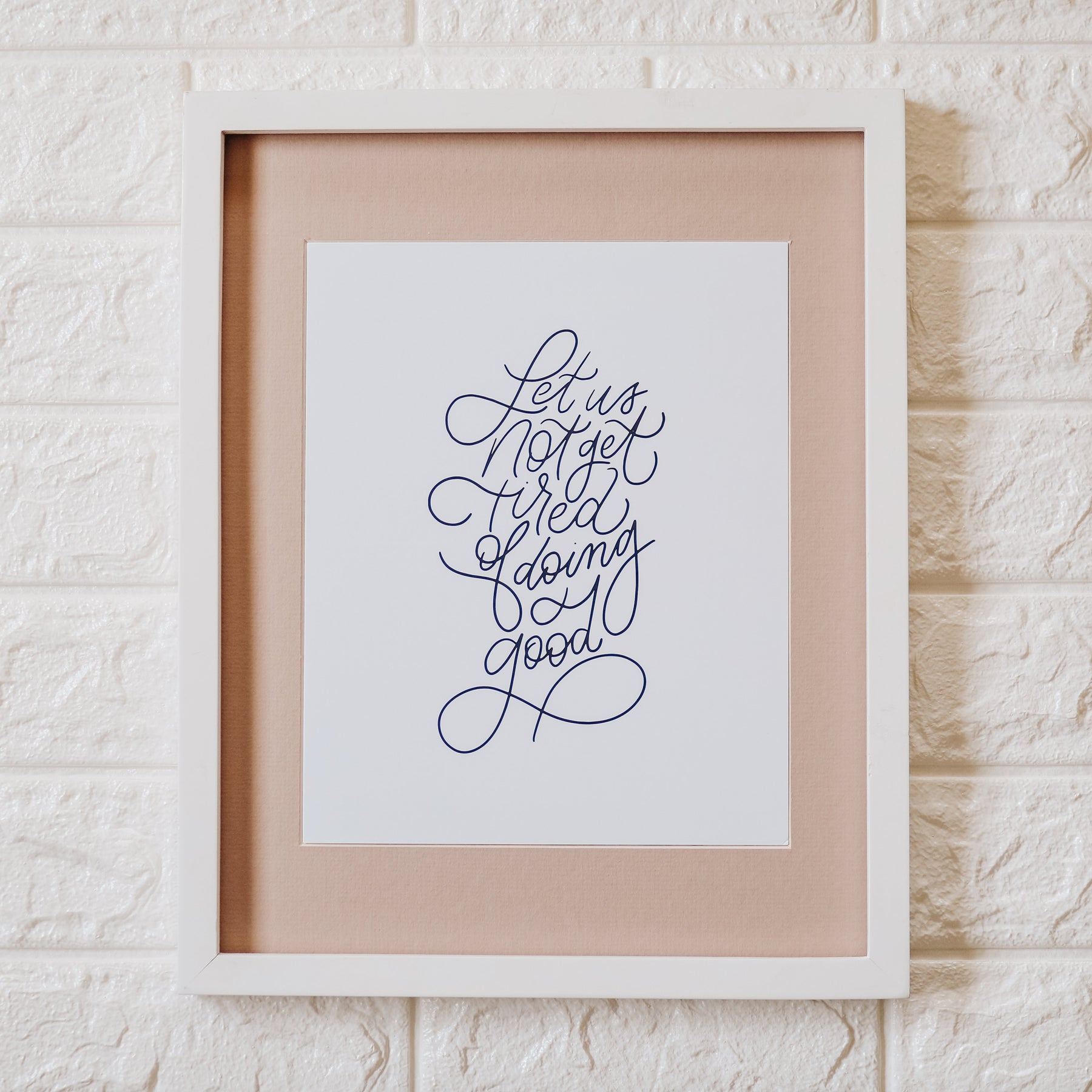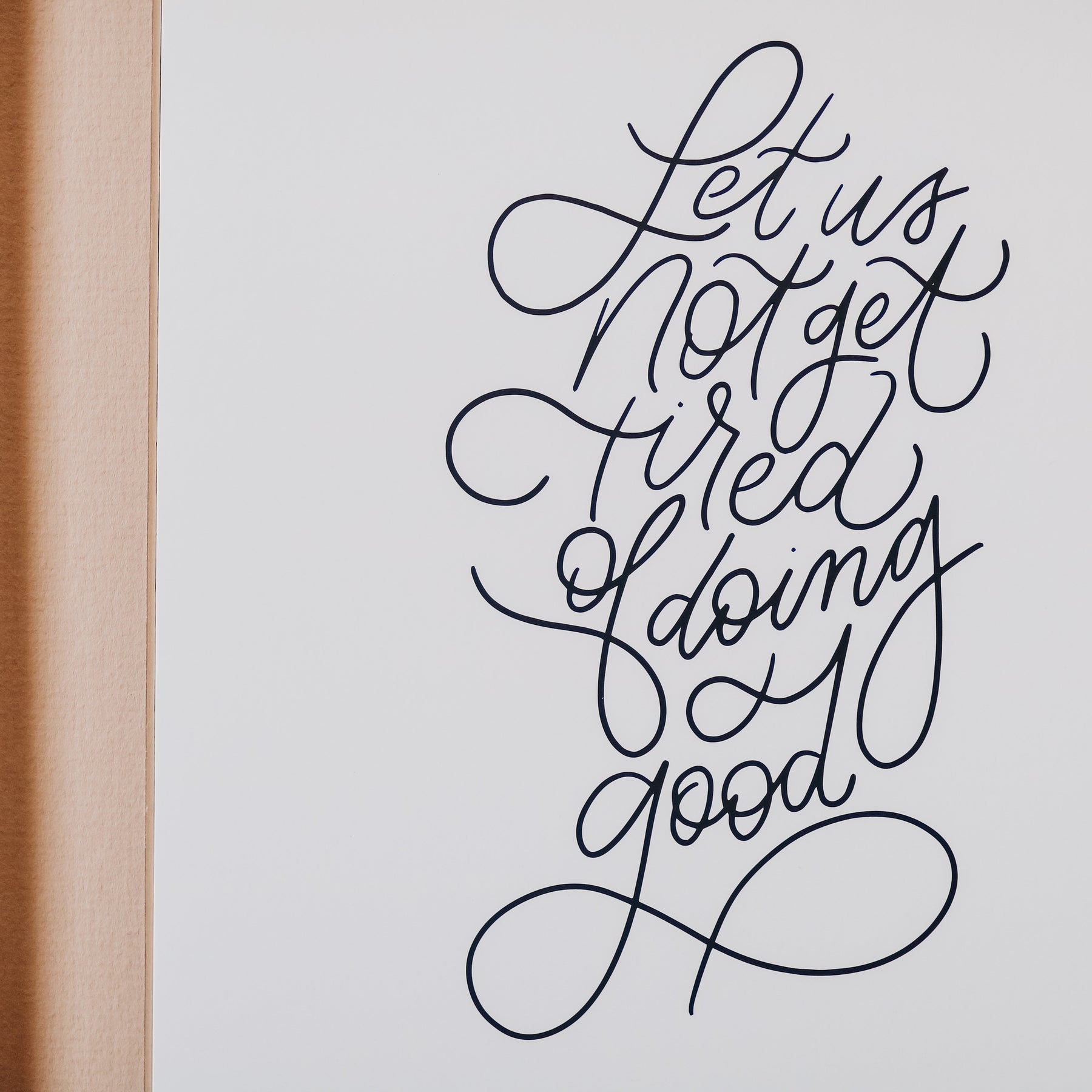 This product is a Slightly Imperfect version of the Let Us Not Get Tired of Doing Good Print! What does that mean? Find out here!