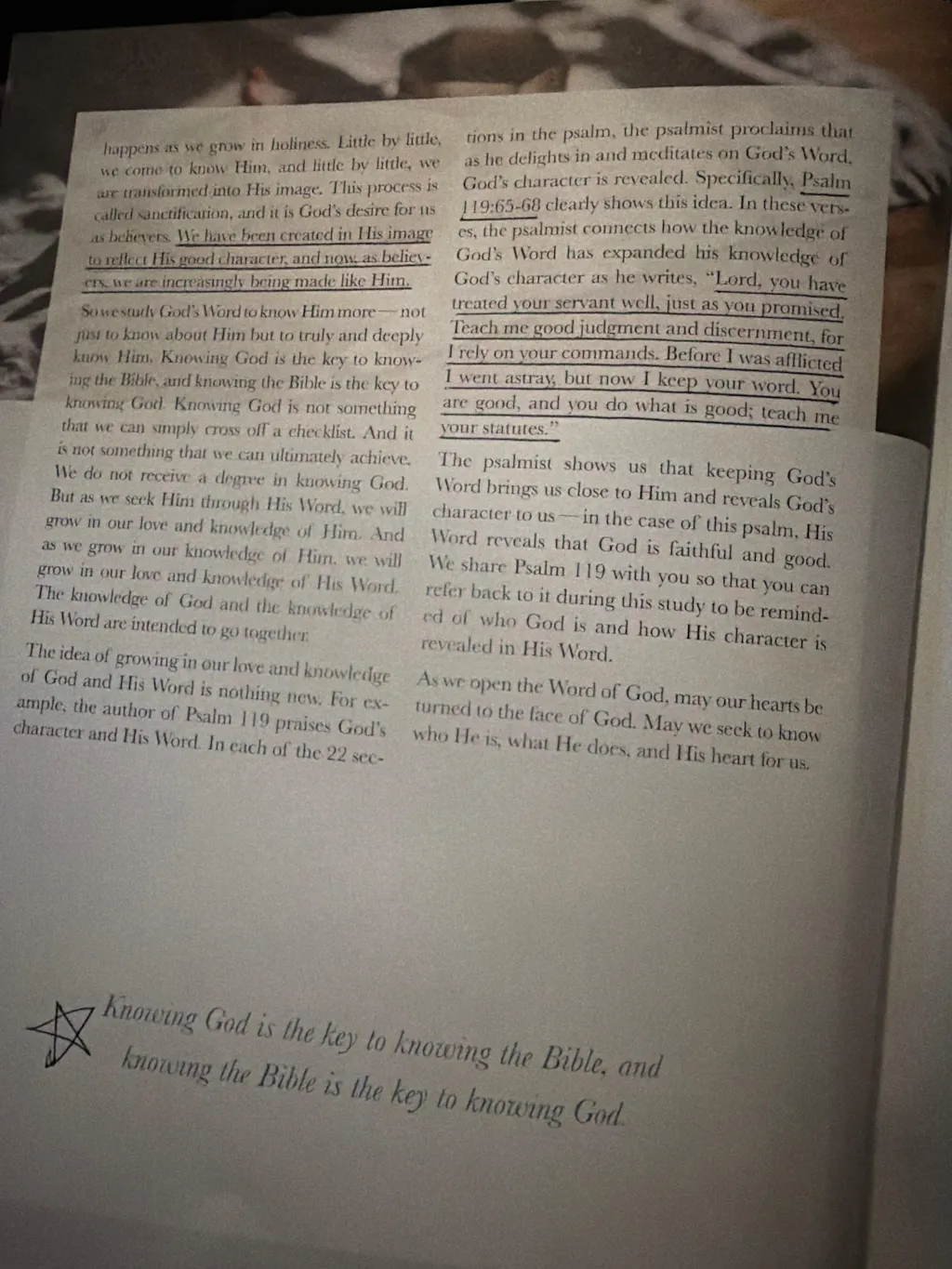 Bible study opened to page with hymn lyrics